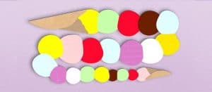 Eiskugeln schlängeln sich von Eistüt zu Eistüte – grafische Darstellung