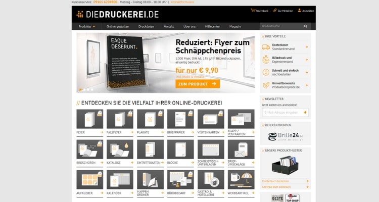 Sehr günstige Internet-Druckerei mit Schwerpunkt auf Papierprodukten sowie Werbeartikeln.