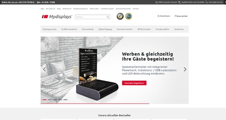 Webseite Mydisplays