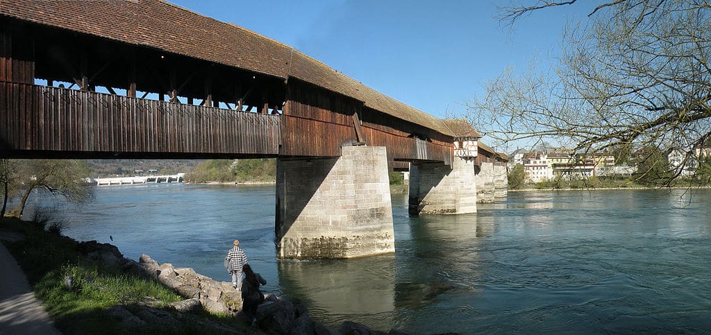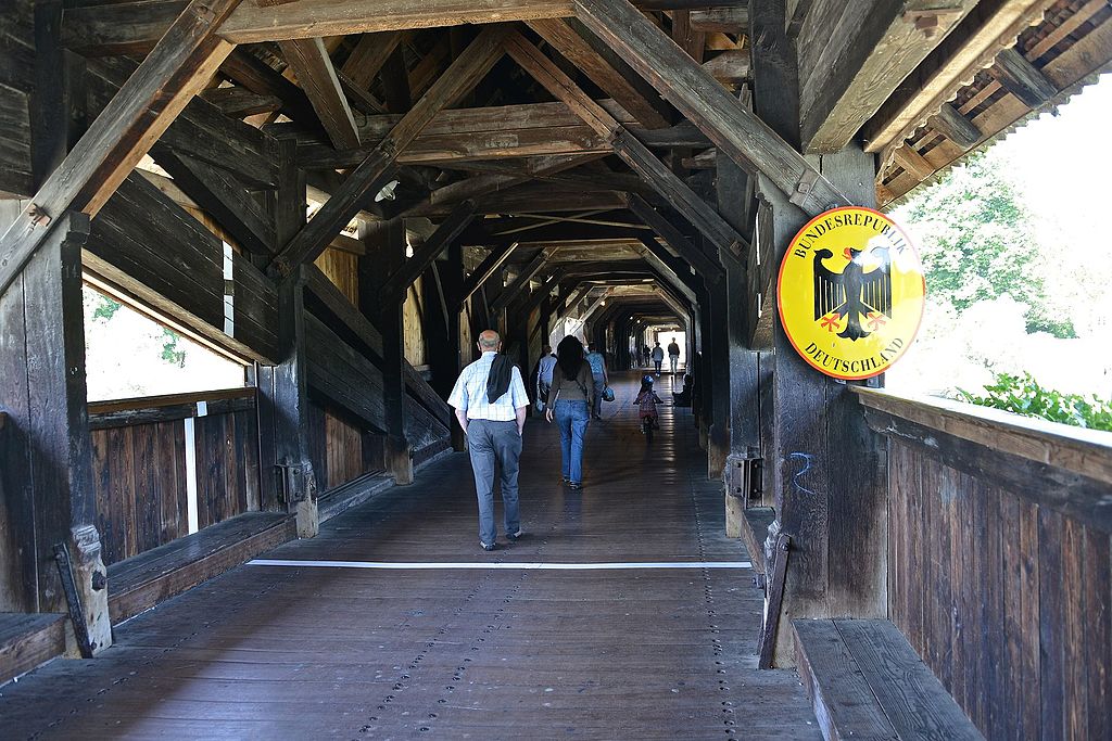 Die 200 m lange Holzbrücke ist die längste ihrer Art in Europa.