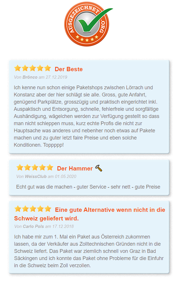 Ihre persönliche Lieferadresse an der deutsch­-schweizerischen Grenze: Wir lagern Ihre Online-Einkäufe und Bestellungen günstig und sicher ein.