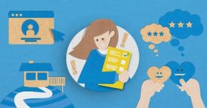 Frau mit Umfrageblog