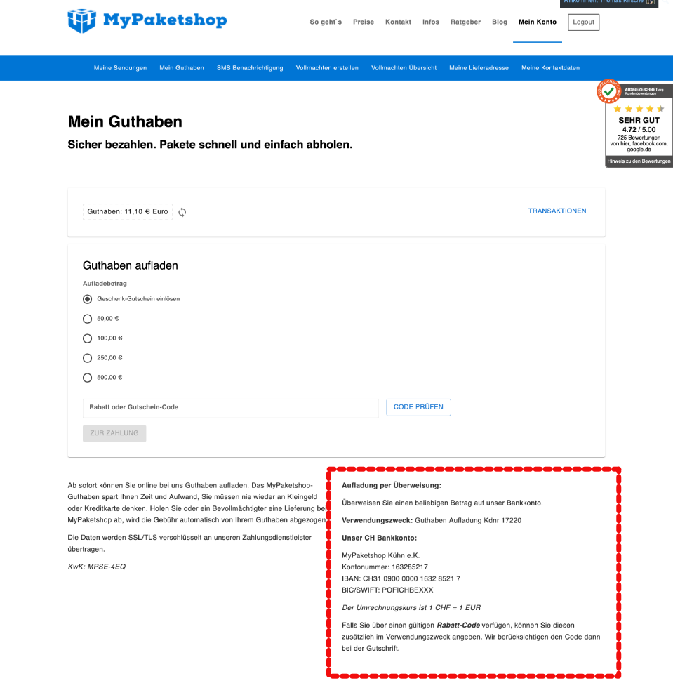 Du bist hier: Startseite1 / Test2 / Das neue MyPaketshop-Guthaben: Zeit und Geld sparen3 / Ueberweisungsdaten