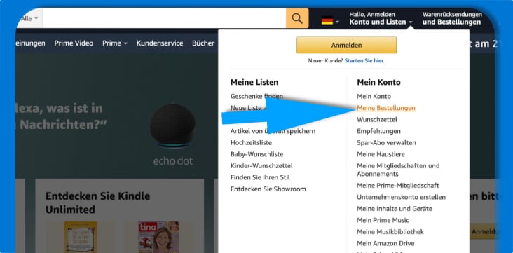 Loggen Sie sich in ihr Amazonkonto ein und rufen Sie Ihre Bestellungen auf.