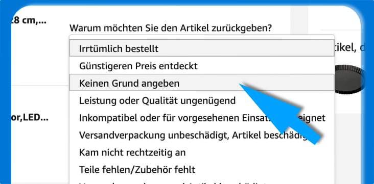 3. Grund auswählen – aber Achtung Rücksendekosten bei einigen Gründen