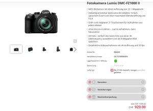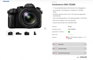 - Panasonic DC-FZ1000 II (circa 900 Euro)