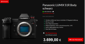 - Panasonic Lumix S1R (circa 4000 Euro)