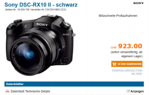 - Sony Cyber-shot DSC-RX10 II (circa 950 Euro)