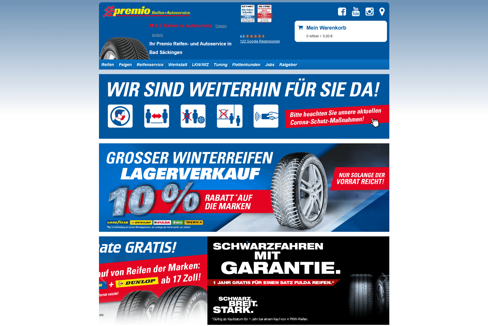 Bei premio dreht es sich vor allem um eine Sache: den Reifen. Aber auch Hauptuntersuchungen, Inspektionen, Ölcheck und ähnliche Leistungen bietet die Werkstatt in der Schaffhauserstr. 18 in Bad Säckingen an. “Die Welt” kührte den Anbieter 2020 sogar zum “Ehrlichen Händler” mit 96 Prozent Kundenzustimmung.