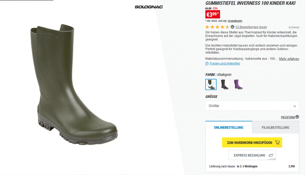 Das österreichische Testmagazin „Konsument“ hatte im Jahr davor ebenfalls Gummistiefel für Kinder getestet. Hier wurde der Inverness 100 von Decathlon zum Testsieger.5