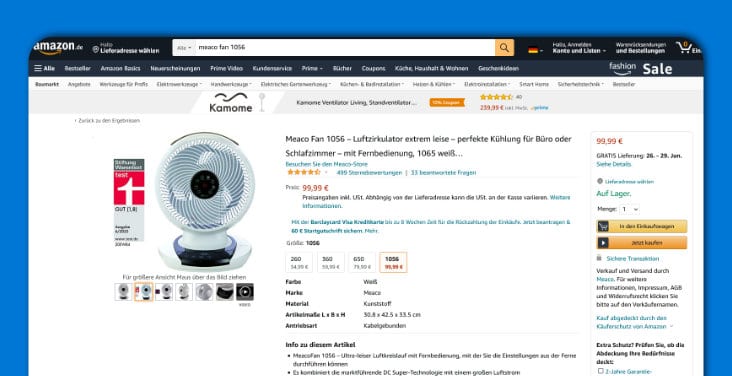 - vgl. “18 Ventilatoren 06/2020”, https://www.test.de/Ventilatoren-im-Test-5058132-5614584/, Abruf am 24.06.21