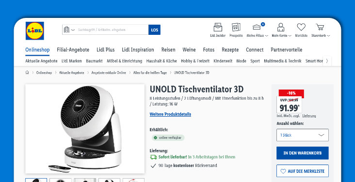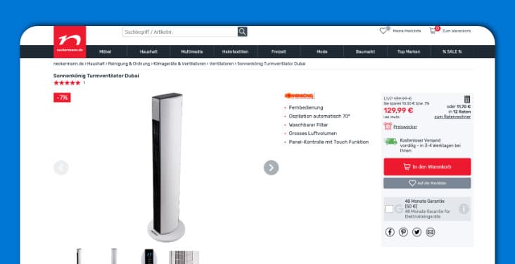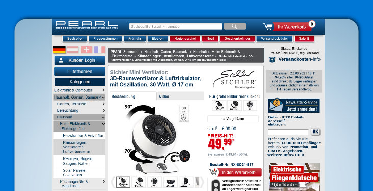 Ventilatoren sind echte Retter an heißen Tagen. Die vielen Modelle machen den Markt recht unübersichtlich, aber mit unseren Kaufempfehlungen können Sie nichts verkehrt machen. Und wenn Sie in Deutschland bestellen, dann einfach zu uns liefern lassen. Dann sparen Sie Lieferkosten und Zollgebühren.