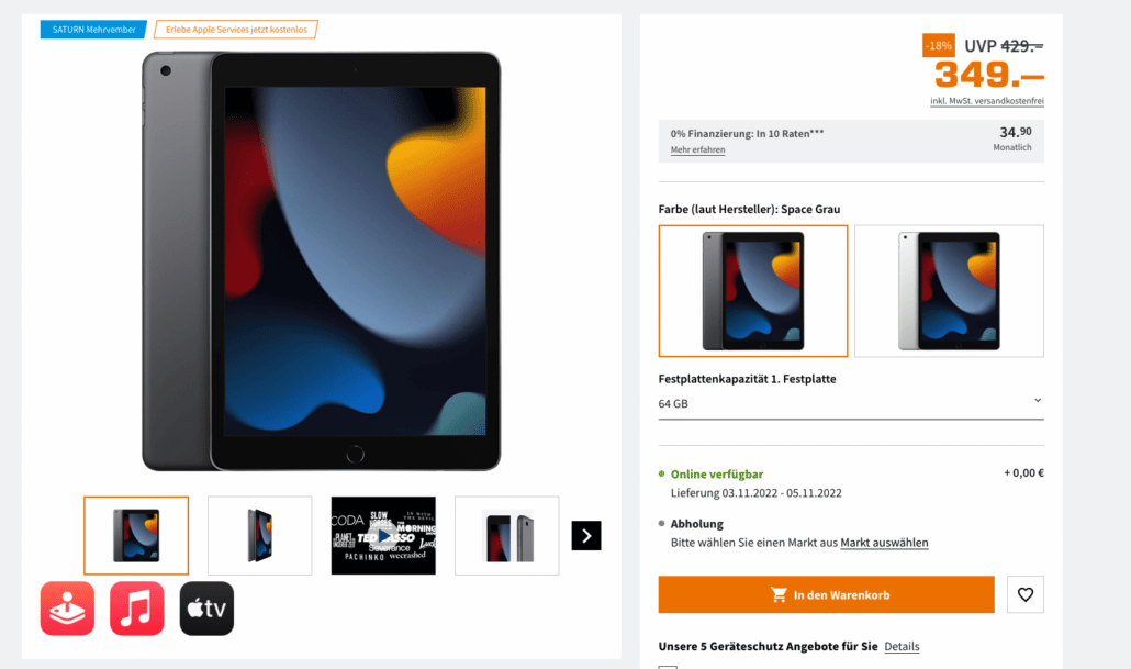 03.11.22 (09:58 Uhr): 349 Euro für APPLE iPad