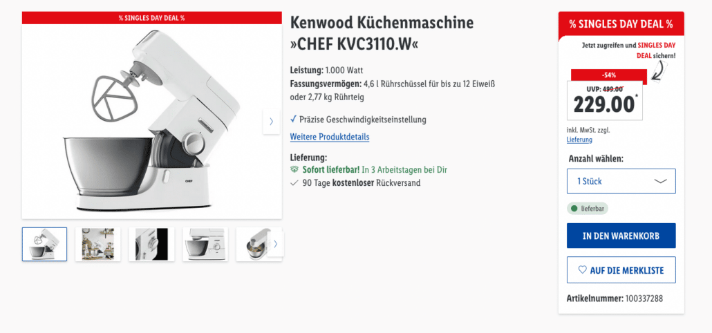 04.11.22 (10:22 Uhr): 229 Euro für Kenwood Küchenmaschine