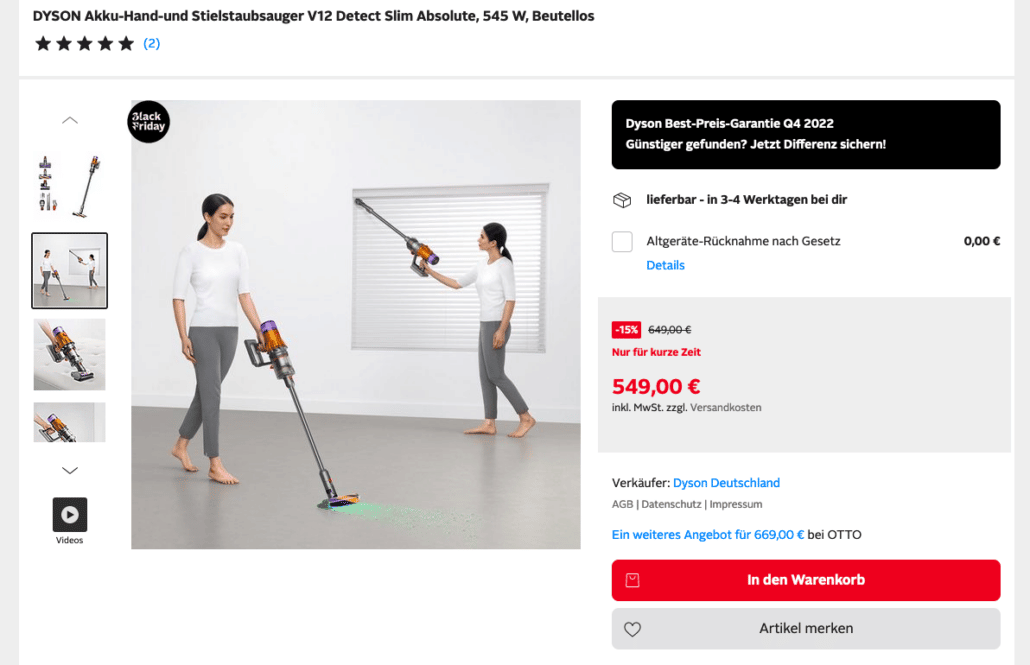 23.11.22 (12:02 Uhr): 549 Euro für DYSON Akku-Stielstaubsauger