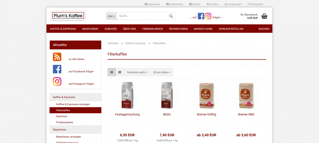 Versandkosten zur deutschen Lieferadresse: 3,95 Euro, ab 500 Gramm Kaffee kostenfrei oder ab 49 Euro Bestellwert