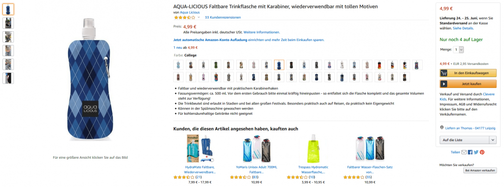 Auf Amazon haben wir eine große und günstige Auswahl an faltbaren Trinkflaschen entdeckt.