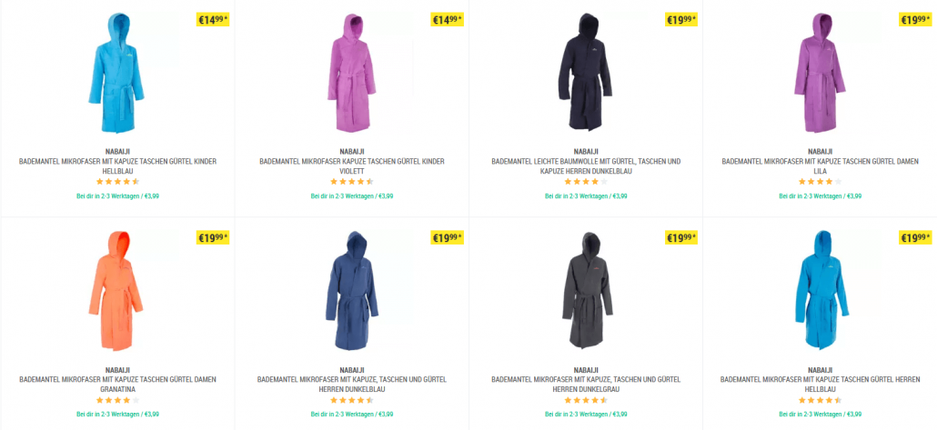 Als Shop für besonders günstige Mikrofaser-Bademäntel können wir, wie gerade eben, Decathlon empfehlen.