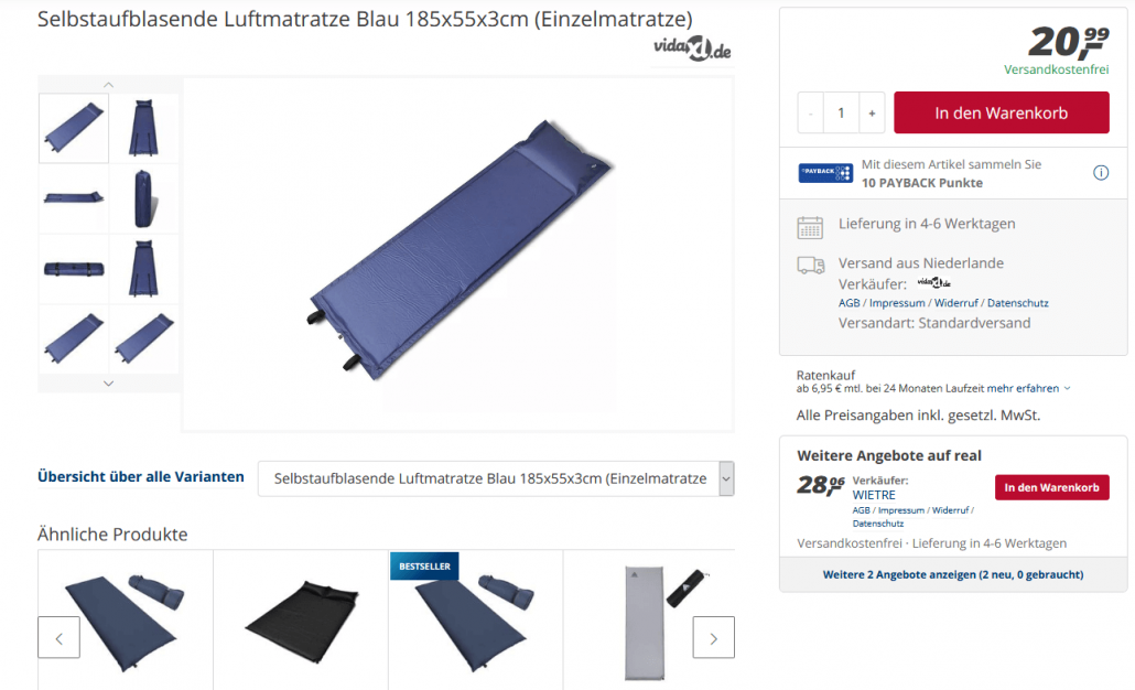 Bei real gibt es preiswerte selbstaufblasende Luftmatratzen für Singles und Paare.