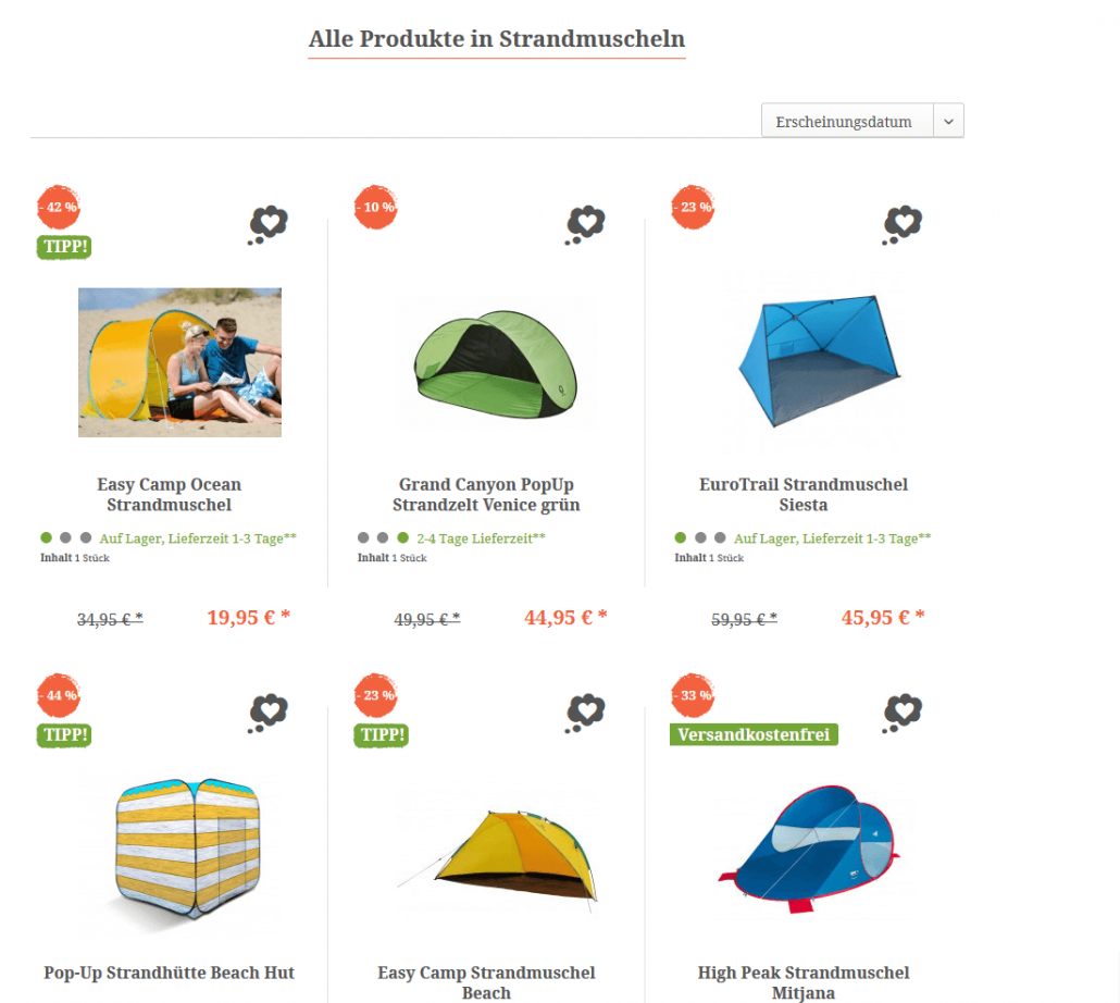 Strandmuscheln sind ein super Sonnenschutz am Meer. (Bild: Screenshot Campingshop 24)