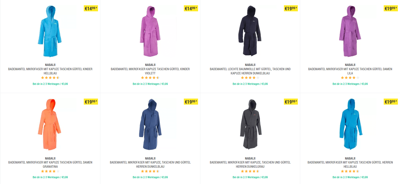 Screenshot Bademäntel im Onlineshop