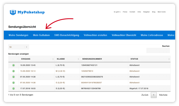 Loggen Sie sich in Ihr Kundenkonto ein. Hier finden Sie den Link zum MyPaketshop-Guthaben. Oder klicken Sie einfach hier.
