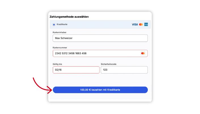 5. Wählen Sie nun Ihre favorisierte Zahlungsmethode aus und tragen Sie die entsprechenden Daten ein. Klicken Sie dann auf die blaue Schaltfläche.