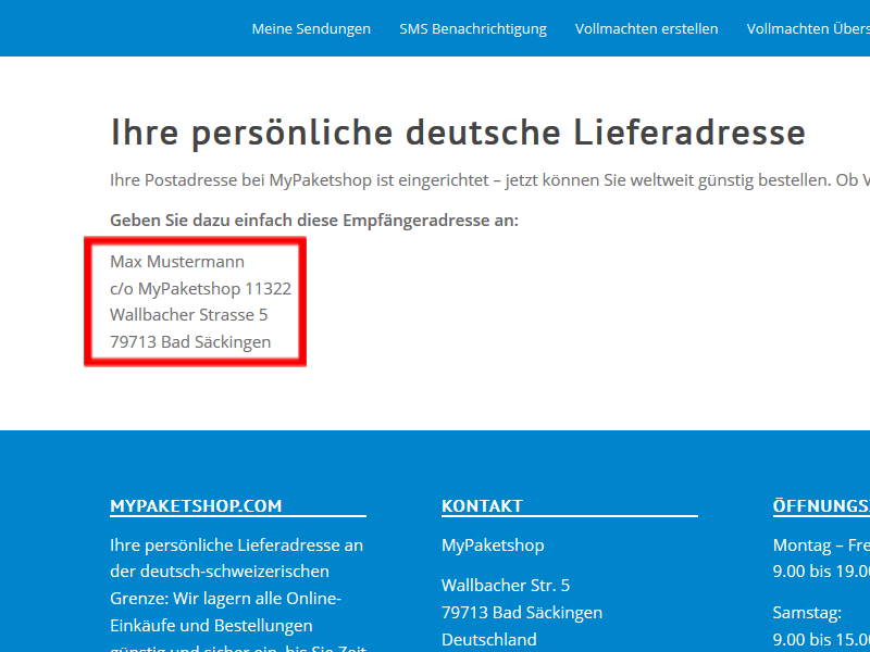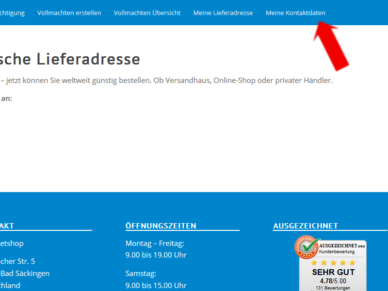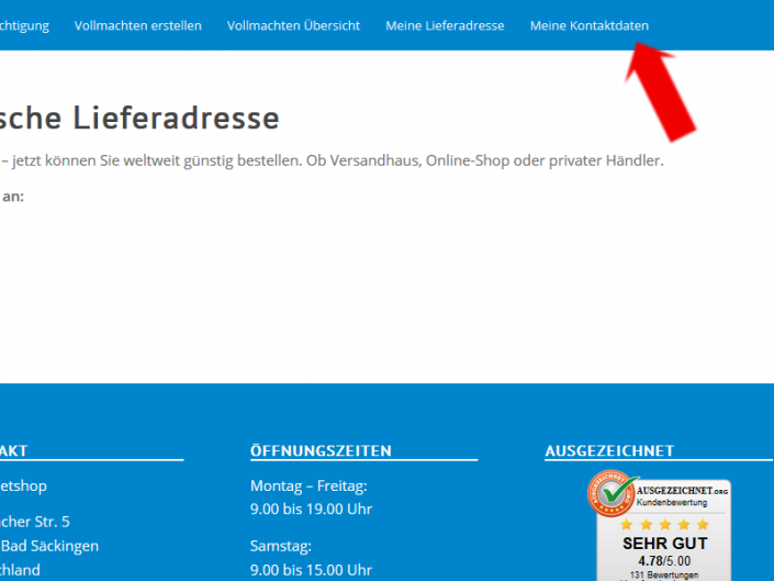 Ihre deutsche Lieferadresse gerade nicht bei der Hand? Kein Problem, sie steht ja in Ihrem Kundenkonto.