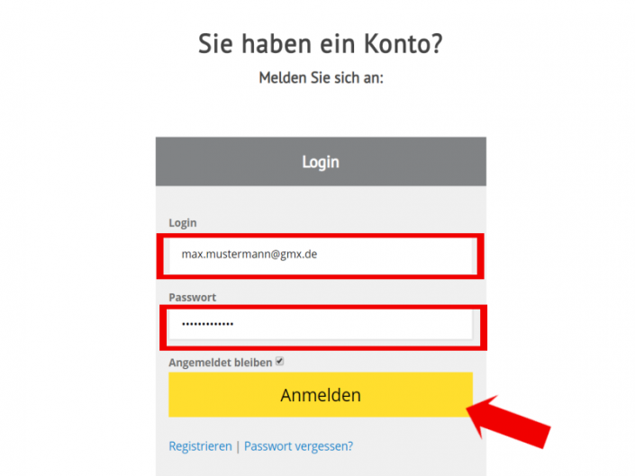 - Einloggen ins Kundenkonto