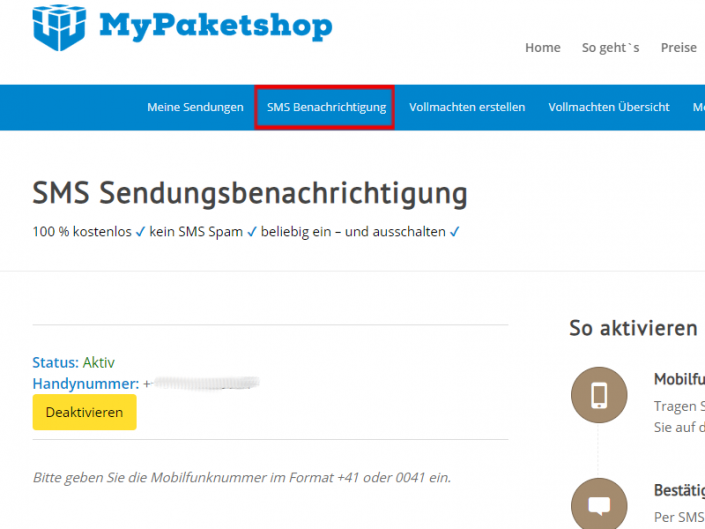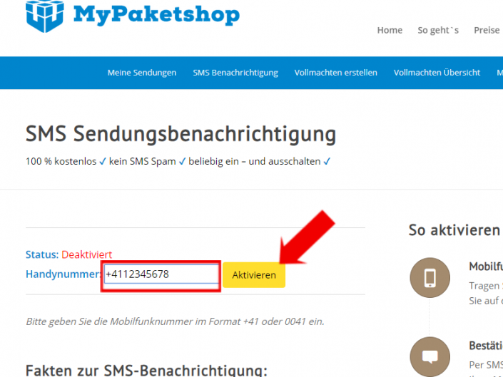 Sie wollen so schnell wie möglich informiert werden, wenn Ihre Sendung bei Ihrer deutschen Lieferadresse eintrifft? Nutzen Sie unsere SMS-Benachrichtigung. So aktivieren Sie die: