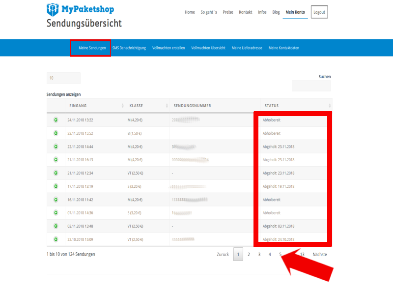 Die Sendungsübersicht zeigt Ihnen jederzeit, welche Lieferungen bei uns eingegangen sind und welche noch auf Abholung warten.