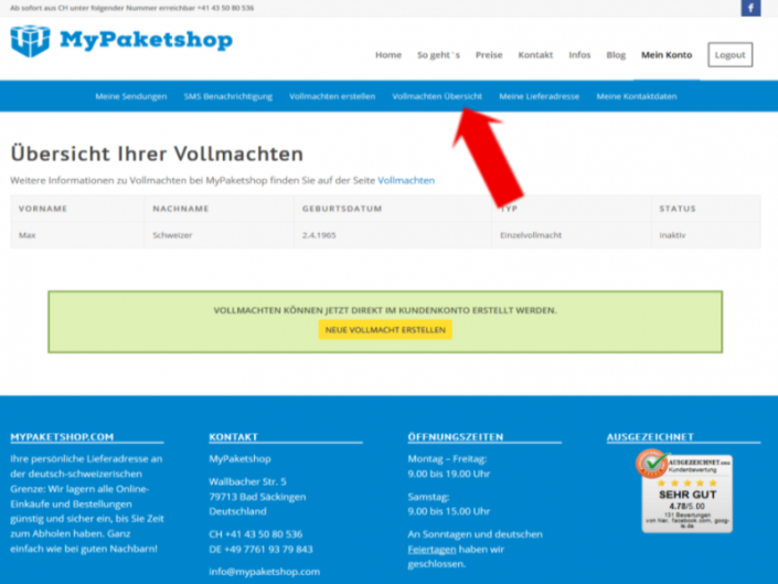 Eine Übersicht über alle Ihre Sendungen? Vollmachten erstellen? Die genaue Schreibweise Ihrer deutschen Lieferadresse? SMS-Benachrichtigung über eingegangene Sendungen aktivieren? Unsere Bild-Anleitungen zeigen Ihnen alle Möglichkeiten Ihres Kundenkontos bei MyPaketshop.