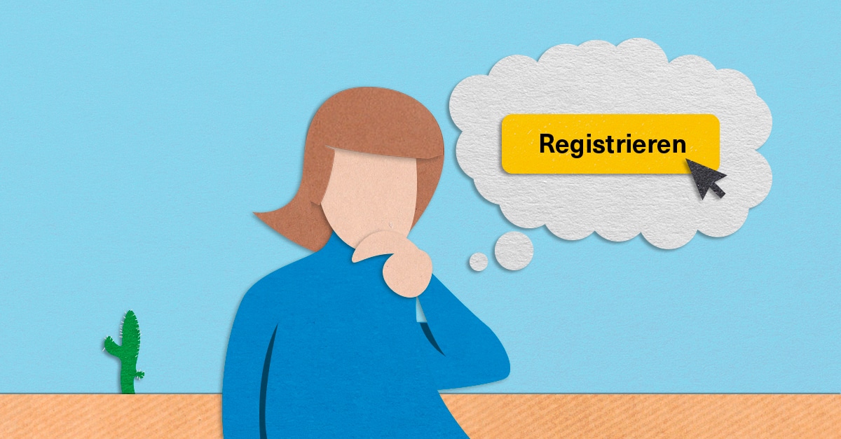 Frau die überlegt, was nach Registrierung passiert – grafisch