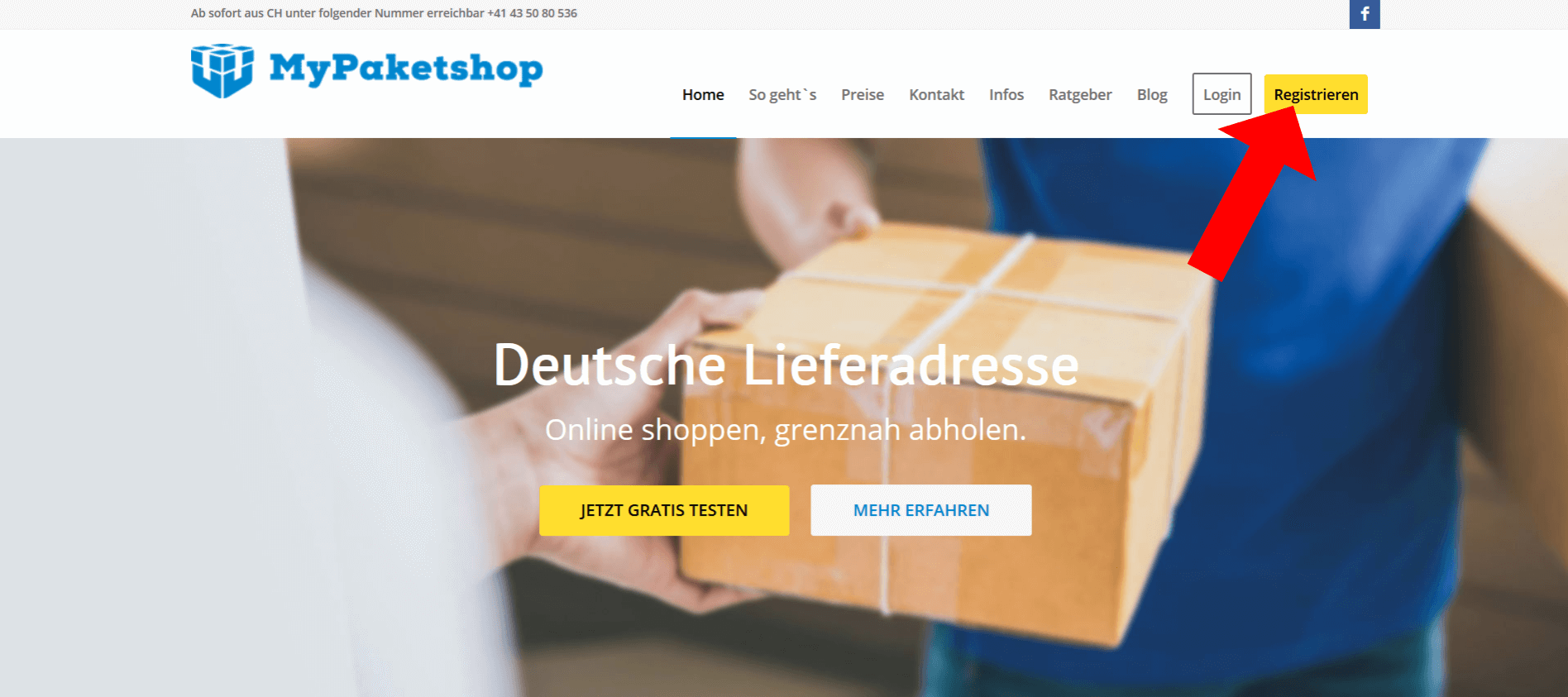 Pfeil der zeigt, wo Sie sich registrieren können.