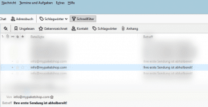 E-Mailprogramm mit Betreffzeile: Ihre erste Sendung ist abholbereit! Die Nachricht kommt immer von info@mypaketshop.com