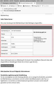 Alle Information zur Sendungen finden Sie in der E-Mail-Benachrichtigung.