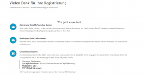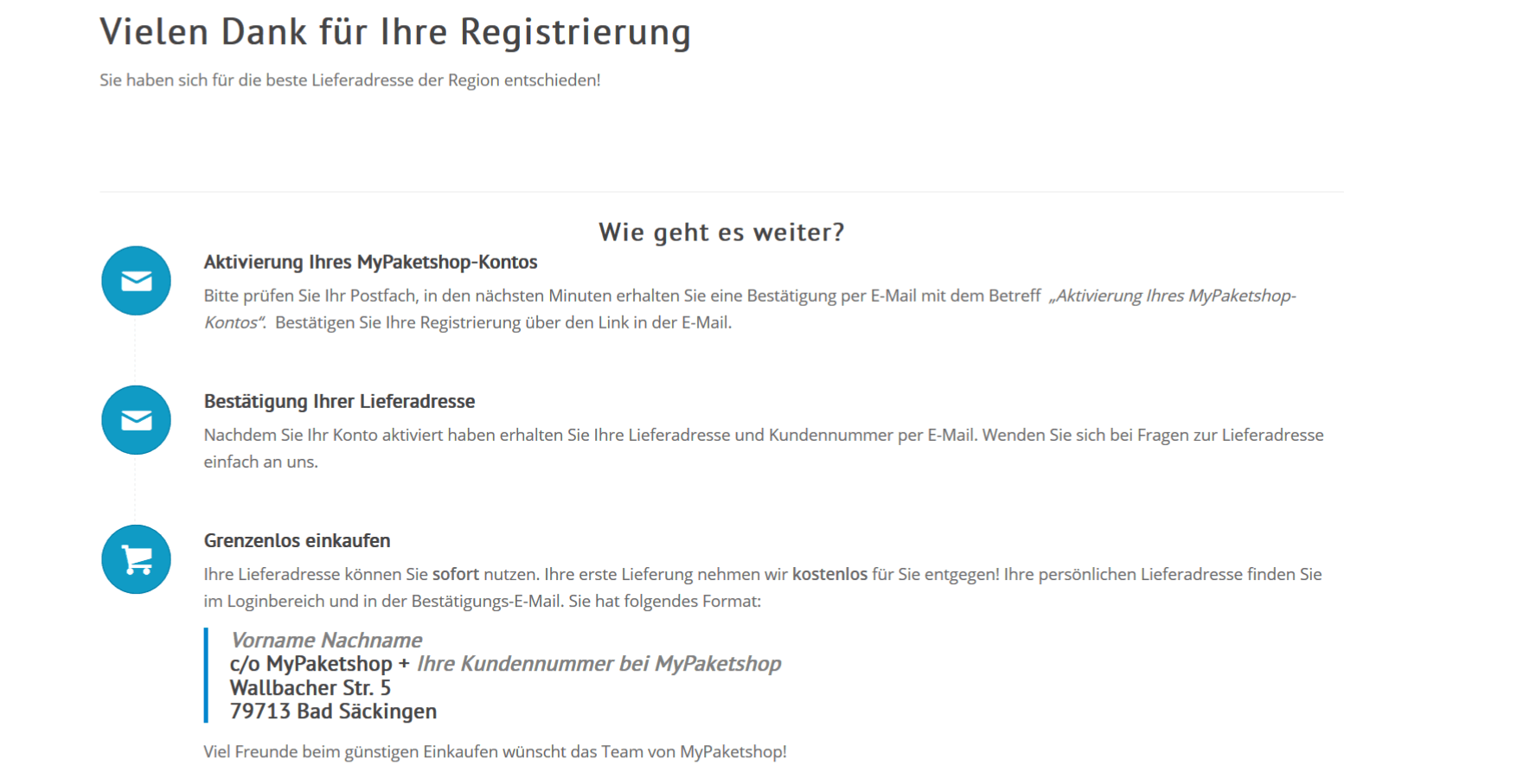MyPaketshop sagt, was nach der Registrierung passiert.