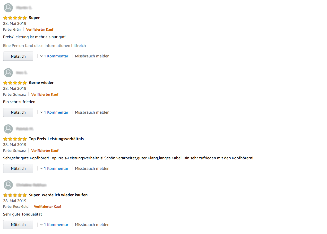 Bei unseren Stichproben am 14. Juni 2019 stellten wir fest, dass die meisten Bewertungen tatsächlich verifizierte Käufe sind. Der Artikel wurde also wirklich auf Amazon bestellt. Es wurde nicht einfach eine Produktrezension verfasst, die ja jeder angemeldete Amazon-Kunde schreiben kann.