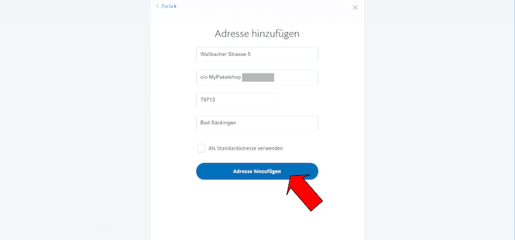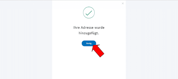 6. Nachdem Sie Ihre MyPaketshop-Adresse bei PayPal eingetragen haben, klicken Sie auf die Schaltfläche „Adresse hinzufügen“. Hat es funktioniert, folgt diese Bestätigung.