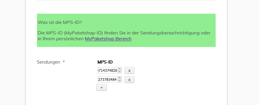 Verzollungsauftrag erteilen – MyPaketshop Sendungs-ID eintragen