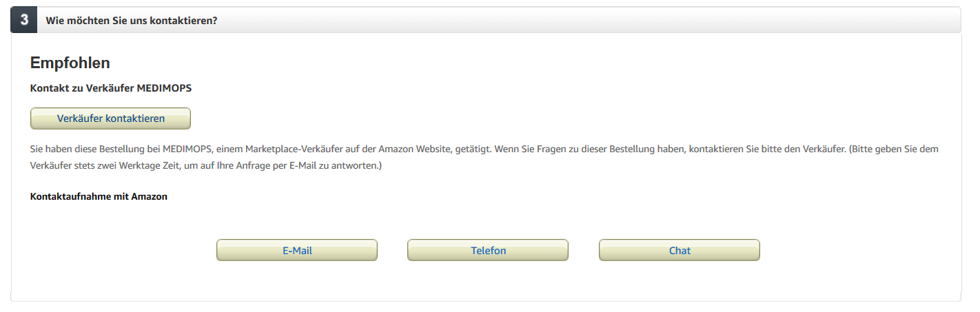 Kontaktmöglichkeiten um zum Amazonsupport zu kommen