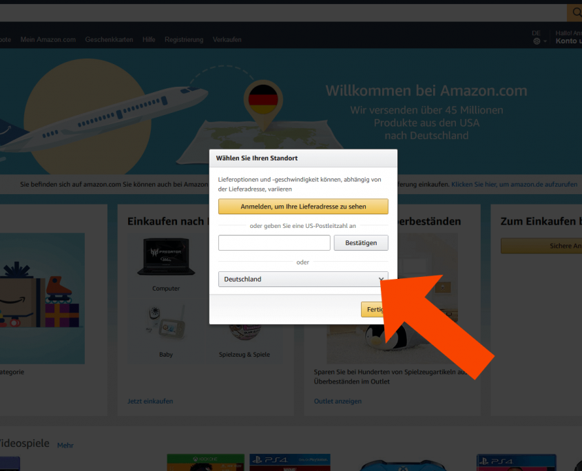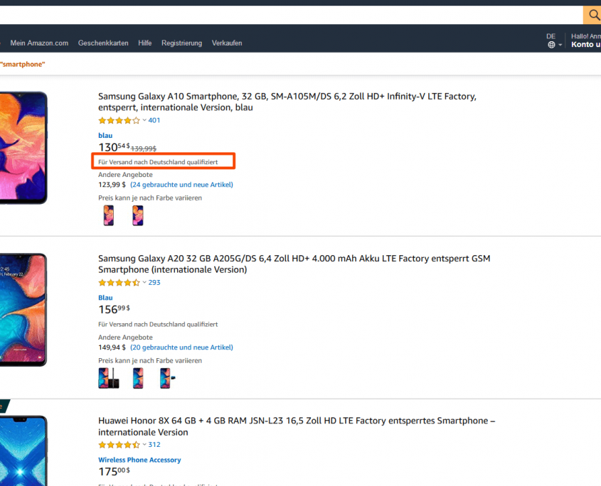 Amazon filtert durch diese Auswahl alle Produkte heraus, die nach Deutschland geliefert werden dürfen. Produkte die sowieso von der Lieferung nach Deutschland ausgeschlossen sind, bekommen Sie dann gar nicht erst zu sehen. Es handelt sich dabei um eine Vereinfachung des internationalen Handels, die unter dem Namen Amazon Global bzw. Amazon Global Store läuft.