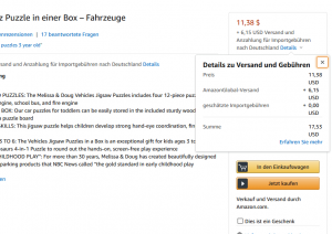Versandkosten und geschätzte Zollkosten bei Amazon.com