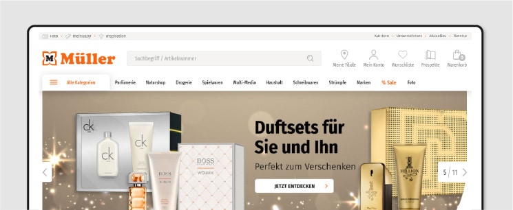 Bekannte Marken-Parfüms, Videospiele und Filme, Biokosmetik, eine große Spielwarenabteilung und natürlich jede Menge Drogerie-Artikel finden Sie bei Müller.