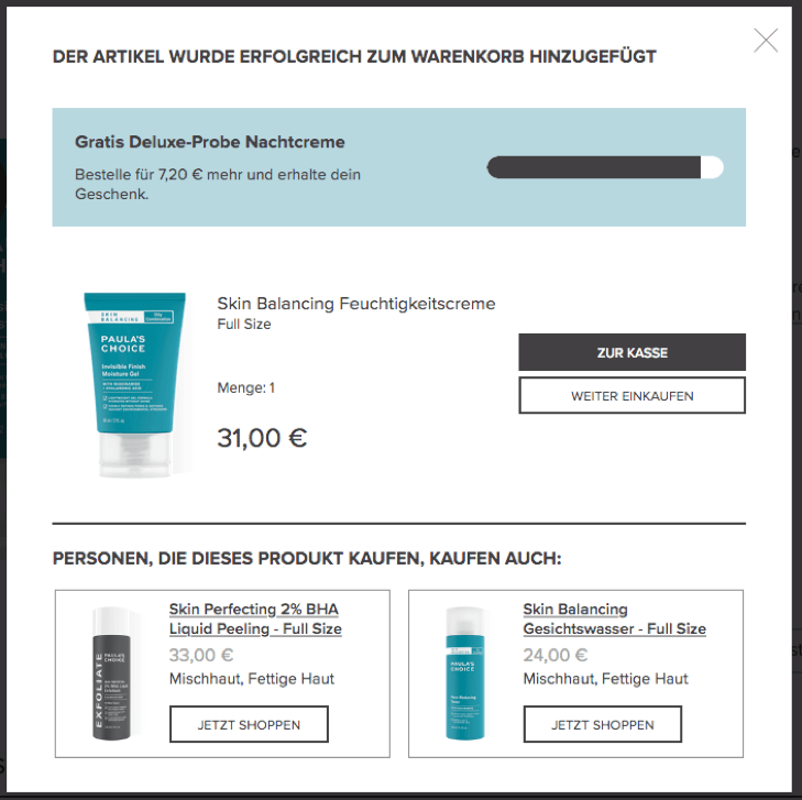 Der Bestellvorgang bei Paula’s Choice ist angenehm unkompliziert und übersichtlich. In der Produktansicht wählen Sie die gewünschte Größe aus und legen das Produkt dann in den Warenkorb.