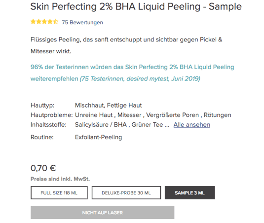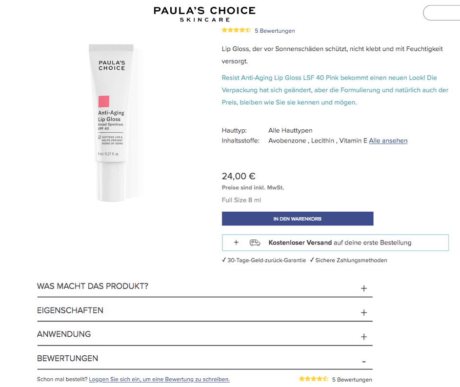 Anwender*innen bewerten das Paula’s Choice überwiegend als gut bis sehr gut. Das gilt für den Onlineshop ebenso wie für neutrale Test-Portale. Es scheint viele Stammkäufer zu geben, die komplette, aufeinander abgestimmte Pflegeprodukte nutzen.2