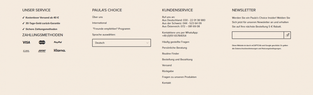 13. Zahlungsarten und Käuferschutz bei Paula’s Choice