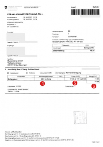 Du bist hier: Startseite1 / Test2 / Beispiele für Verzollungskosten: Mehrwertsteuer, Zoll und Porto der Schweiz3 / Beispiel Veranlagungsverfügung Zollgebühren separat