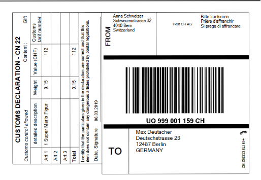 Zollinhaltserklärung CN22- Schweizer Post – Schritt 09