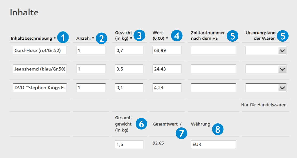 Zollinhaltserklärung CN23 – Online Formular Deutsche Post (DHL)